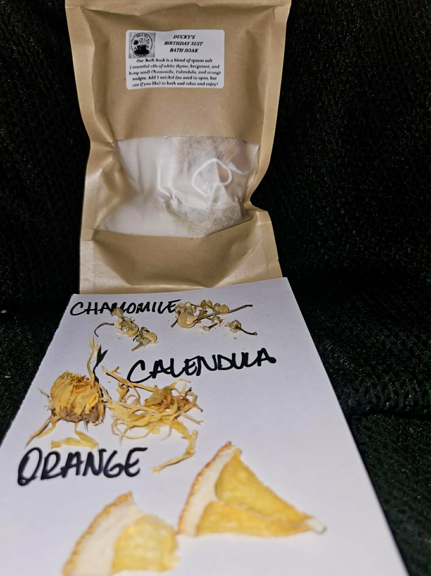 Indulge in the ultimate self-care ritual with Birthday Suit Soak—a luxurious bath experience that transforms your everyday tub into a personal spa sanctuary. Infused with mineral-rich Epsom salts and a carefully curated blend of calendula, chamomile, and dried orange, this soak softens and nourishes your skin while calming your nervous system. Feel the tension melt away as soothing botanicals and uplifting citrus brightness envelop you in pure relaxation. Whether you're unwinding after a demanding day or treating yourself to the rejuvenation you truly deserve, Birthday Suit Soak delivers visible results—softer skin, deeper calm, and a renewed sense of well-being. Your body craves this moment. Give it what it needs. Elevate your bath time. Elevate yourself.